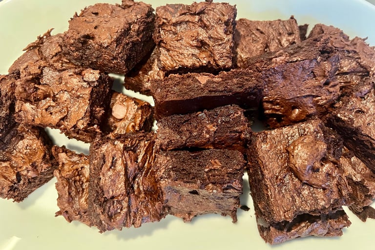 Texture: Dense, chewy edges, fudgy center, shiny top